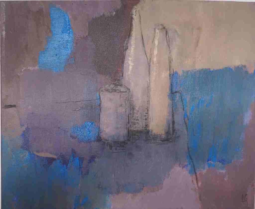 J’écrirai un jour les mémoires silencieuses de ces personnes effacées. Leurs visages émergent d’un nuage de formes têtues et tertiaires, un fantôme de sourire éclaire leurs lèvres et leurs yeux tristes boivent les souvenirs. J’interrogerai ces objets sans poids, étirés comme des personnages, ou ces théières vides bombant leurs flancs. Couleurs de la nuit, teintes sourdes qui embrasent nos songes. Éclats de céruse trouant la brume. Cyans ingénus et naïfs mettant de ci de là l’accord mat des matins où le soleil ne luit pas encore.