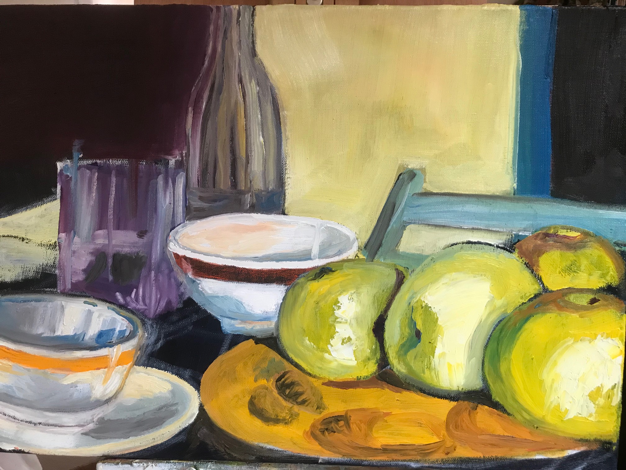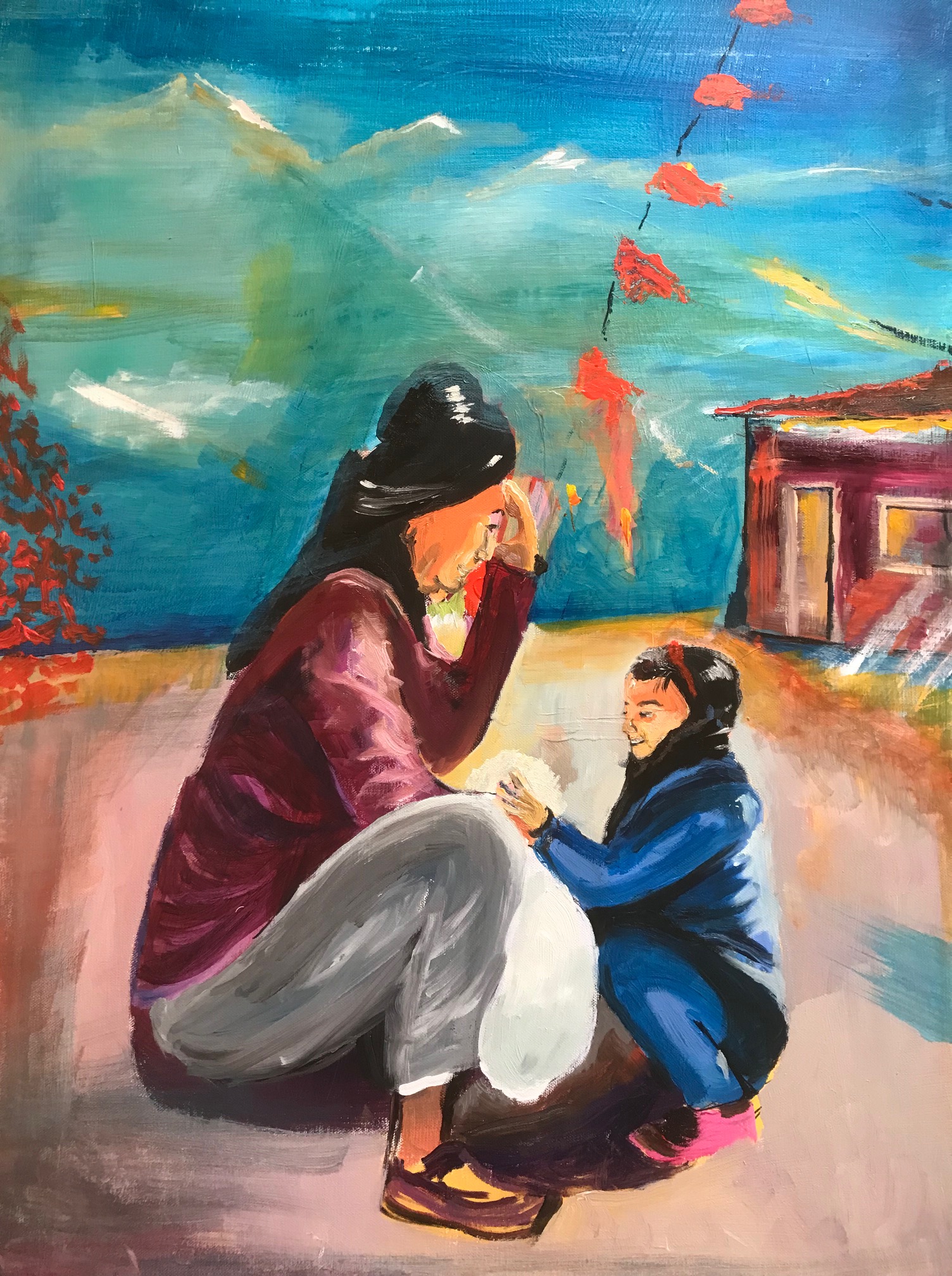 peintures à l’huile cliquer pour agrandir Livres d’art – format 50 x 70 Andrée – Hommage à David Hockney – Crest – juillet 2021 – format 50 x 70 Puerto Natales format 40 x 50 Les oliviers de Manu et Elisa – format 50 x 70 nature morte aux pommes vertes – format 50 x 70 La Tibétaine et sa fille, à Darjeeling en 2018 – format 50 x 7